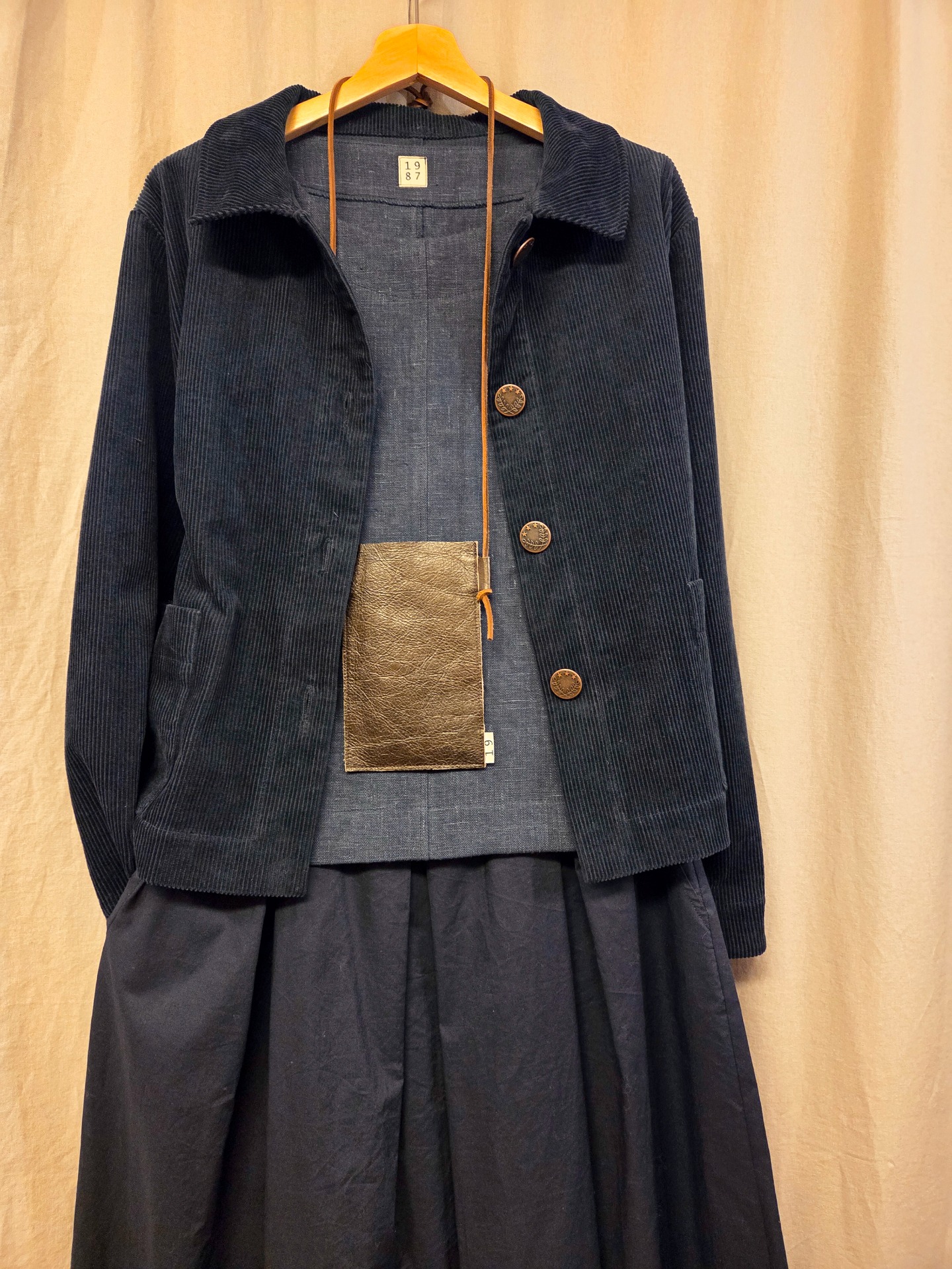 Mörkblått är mångas favoritfärg. Så nu finns flera populära modeller att få i just mörkblått. Här har vi valt att sätta samman manchester med grovt lin och krispig poplin, allt i mörkblått. Manchesterjackan Gaia, toppen Cara och kjolen Flisa. Det går nu även att få alla manchesterplagg i mörkblått!