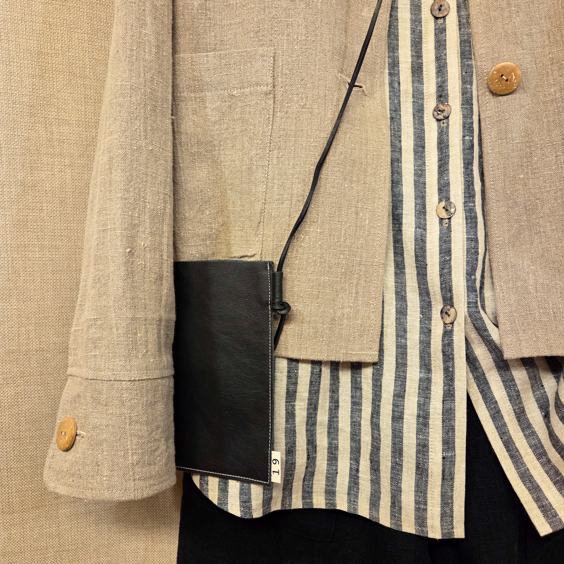 Även den randiga linneskjortan Debbie passar fint till en kortare jacka som Git. Perfekt till är mobilväskan Ildika i svart skinn.