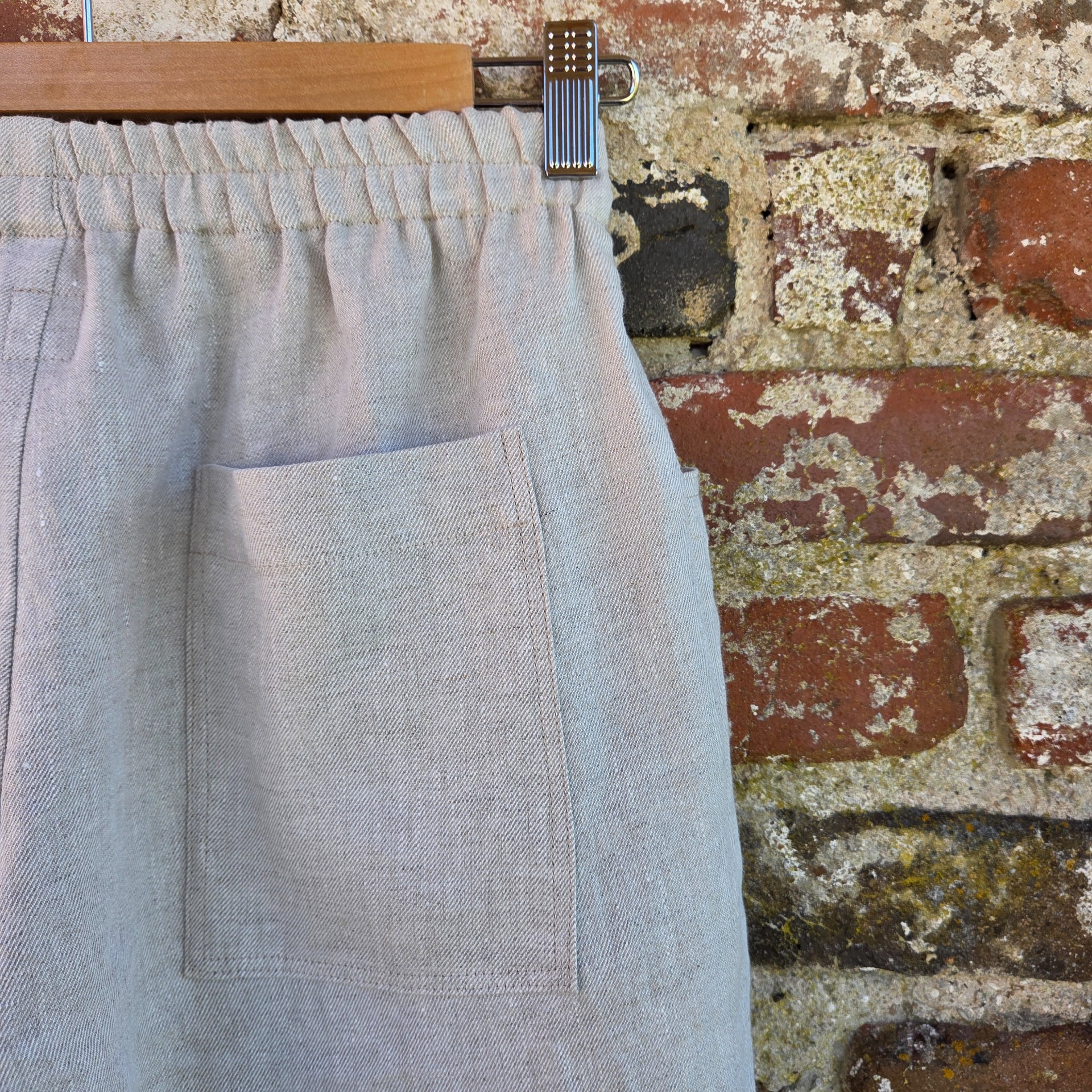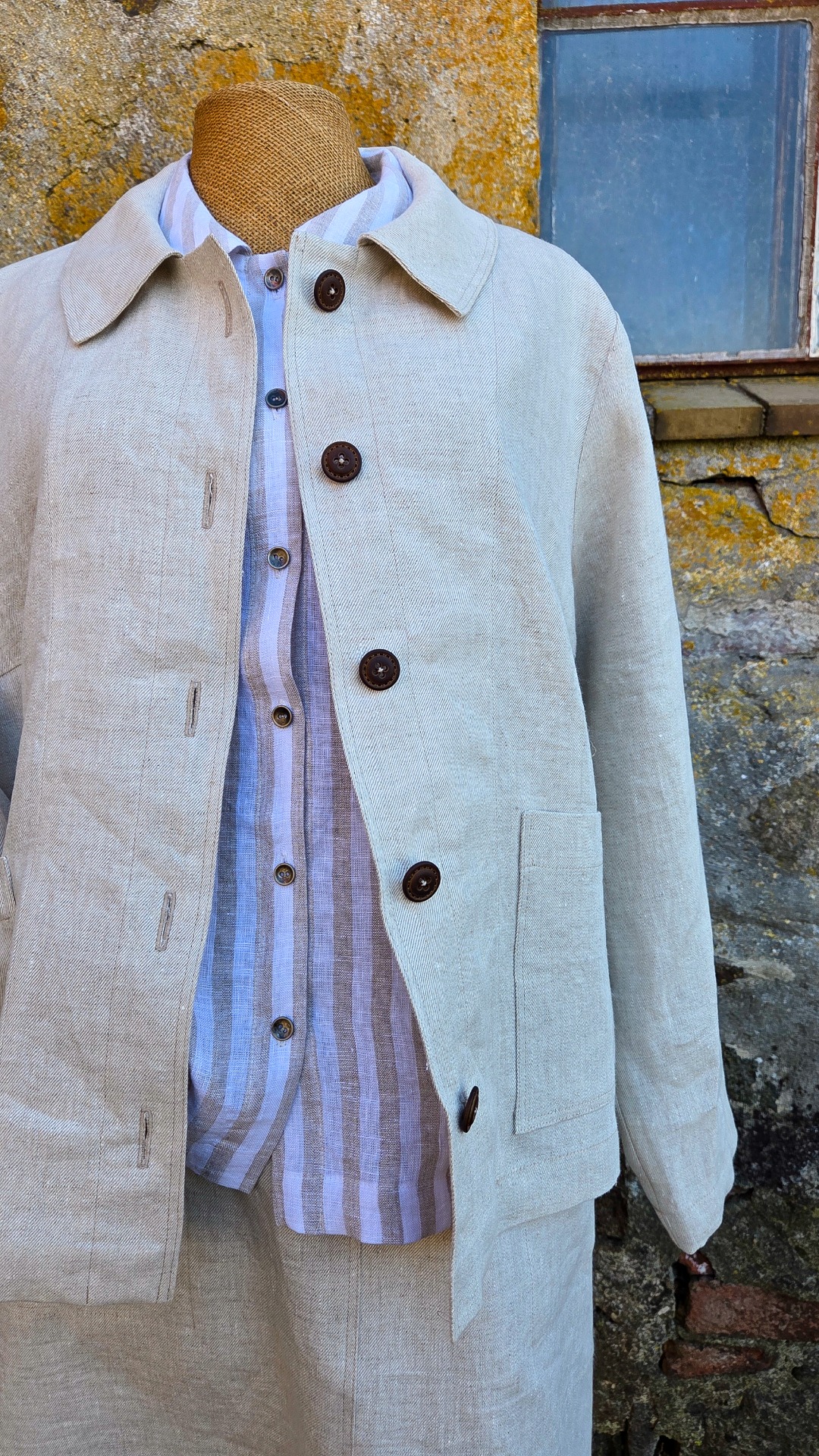 Avslappnad look i tvådelad kostym signerad 1987. Vår senaste kvalité, twill vävt lin, har en slät yta och fin glans. Påminner om denim men är ett snäpp stiligare.